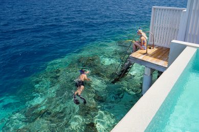 Fotos, Galerie Impressionen von unserem Amilla Maldives Resort & Residences-Test Gleich hinter der Wasservilla geht es hinab in den Ozean. Beim Floating Breakfast startet man den Tag mit einem Frühstück im Pool.Das Blue Hole ist ein spektakuläres Naturphänomen für Taucher. © Amilla MaldivesDieses Boot ermöglicht besondere Einblicke in die Unterwasserwelt. © Amilla MaldivesVor der Strandvilla können Gäste in bequemen Liegen entspannen. © Amilla Maldives Zum Wein-Tasting wird exquisiter Käse gereicht. Das „Baazaar“ am Abend. © Amilla MaldivesDie elegante Great Beach Villa Residence verfügt über acht Schlafzimmer. © Amilla MaldivesÜber eine Leiter gelangt man von der Wasservilla direkt zum Riff. © Amilla MaldivesÜber hölzerne Treppen geht es hinauf in die Baumhäuser des Resorts. © Amilla Maldives © Bernhard KriegerDie weißen Wasservillen des Amilla Fushi strahlen in der Sonne. Das exklusive Amilla Estate verfügt über sechs Schlafzimmer und einen Privatpool. © Amilla Maldives Beim Stand up Paddling können Urlauber die Lagune erkunden. © Amilla MaldivesDie Tree Houses zählen zu den Highlights im Resort. © Amilla Maldives