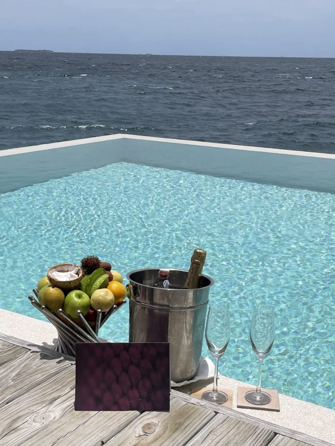 Fotos, Galerie Impressionen von unserem Amilla Maldives Resort & Residences-Test Gleich hinter der Wasservilla geht es hinab in den Ozean. Dieses Boot ermöglicht besondere Einblicke in die Unterwasserwelt. © Amilla MaldivesVor der Strandvilla können Gäste in bequemen Liegen entspannen. © Amilla Maldives Die Tree Houses zählen zu den Highlights im Resort. © Amilla Maldives Über hölzerne Treppen geht es hinauf in die Baumhäuser des Resorts. © Amilla Maldives Über eine Leiter gelangt man von der Wasservilla direkt zum Riff. © Amilla MaldivesDas Blue Hole ist ein spektakuläres Naturphänomen für Taucher. © Amilla MaldivesBeim Floating Breakfast startet man den Tag mit einem Frühstück im Pool.Beim Stand up Paddling können Urlauber die Lagune erkunden. © Amilla MaldivesDas exklusive Amilla Estate verfügt über sechs Schlafzimmer und einen Privatpool. © Amilla Maldives Die weißen Wasservillen des Amilla Fushi strahlen in der Sonne. Zum Wein-Tasting wird exquisiter Käse gereicht. Die elegante Great Beach Villa Residence verfügt über acht Schlafzimmer. © Amilla MaldivesDas „Baazaar“ am Abend. © Amilla Maldives© Bernhard Krieger
