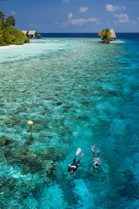 Kandolhu ist wirklich von einem spektakulären Hausriff umgeben, das nur wenige Meter vom Strand entfernt beginnt. Bereits beim Hineintauchen ins seichte Wasser eröffnet sich eine faszinierende Welt. Das Riff ist leicht zugänglich und bestens für Anfänger wie Fortgeschrittene geeignet. Die Sicht unter Wasser ist meist exzellent und ermöglicht es, die bunte Vielfalt hautnah zu erleben. Alle Gäste erhalten für die Zeit ihres Aufenthalts kostenlos eine Tauchermaske und Flossen.