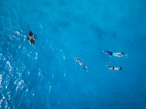 Immer wieder begleitetet mich große, aber natürlich friedliche Schwarzspitzenriffhaie beim Schnorcheln. Ich sah einen bunte Fischvielfalt und gleich mehrere, völlig entspannte und neugierige Schildkröten. In der Lagune waren auch von den Stegen aus große Fischschwärme zu beobachten und täglich Haie.